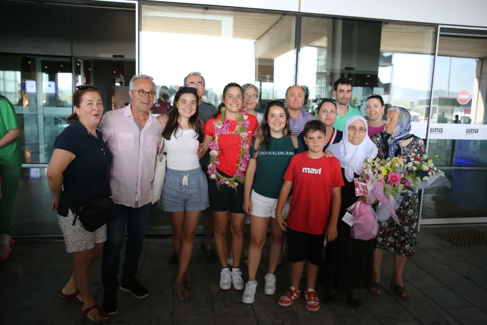 Terminal dışına çıktığı sırada davul ve zurnayla karşılanan genç yüzücünün oldukça mutlu olduğu gözlendi.