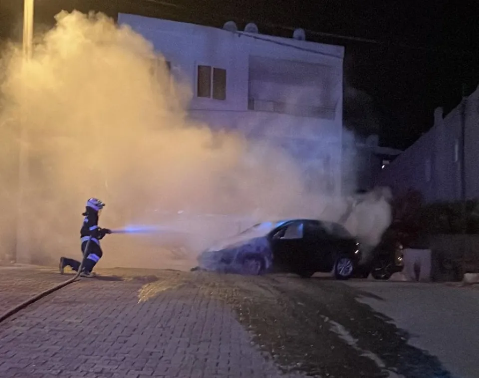 Bodrum ilçesinde, park halindeki otomobilde çıkan yangın söndürüldü.