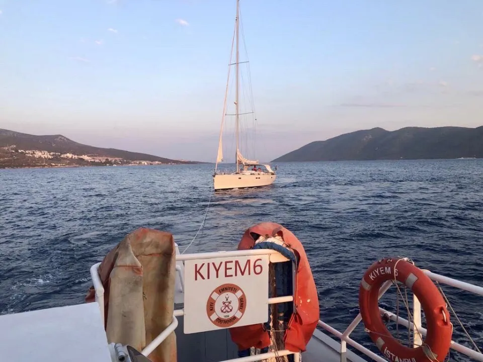 İçerisinde üç kişinin bulunduğu tekne, ekipler tarafından yedeklenerek Bodrum Marina'ya emniyetle yanaştırıldı.