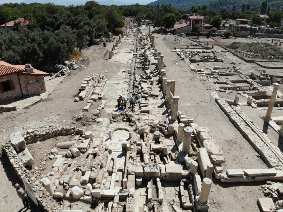 Söğüt, "10 metre genişliğinde. Helenistik ve Bizans döneminde kullanılan ve Roma döneminde aktif olarak hizmet veren bir caddeyi açığa çıkarmıştık. Şimdi bu caddenin ortasında devam eden yaklaşık 70 santimetre genişliğinde bir metre derinliğindeki kanalizasyon sistemini gün yüzüne çıkardık. Buranın konservasyon ve restorasyon çalışmalarını tamamlıyoruz." dedi.
