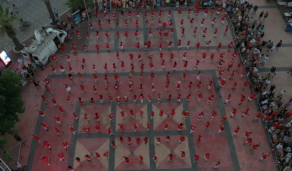 Aralarında çocukların da olduğu vatandaşlar, üzerlerinde Türk bayrağını simgeleyen 30 Ağustos Zafer Bayramı yazılı kırmızı-beyaz kıyafetleriyle oyuna katıldı. Yüzlerce kişinin katıldığı toplu gösteride güzel görüntüler oluştu.