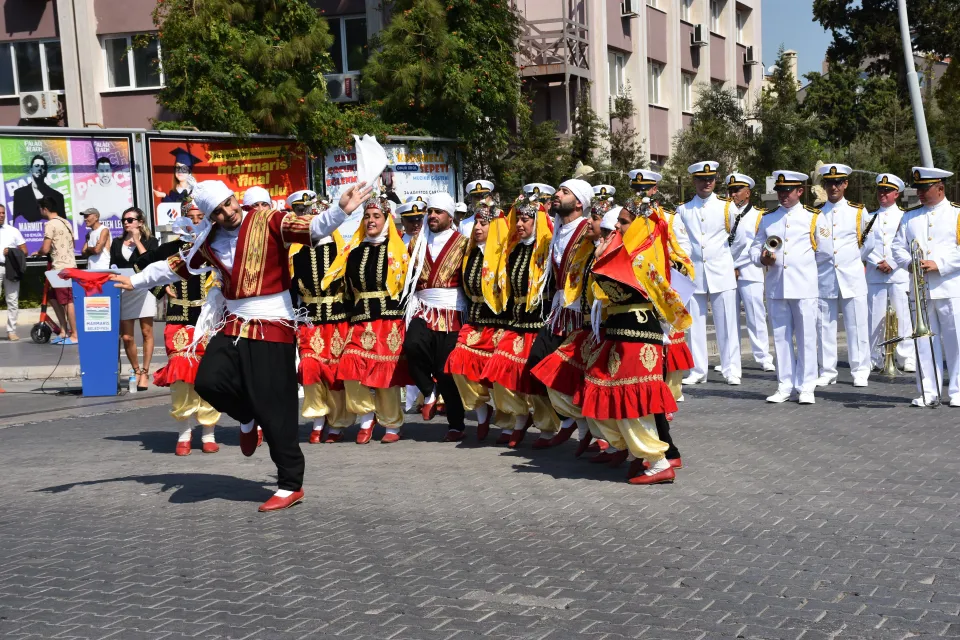 Marmaris Kaymakamı Ertuğ Şevket Aksoy, Aksaz Deniz Üs Komutanı Tuğamiral İbrahim Kurtuluş Sevinç, Marmaris Belediye Başkanı Mehmet Oktay, Marmaris Cumhuriyet Başsavcısı Turgay Karabulut, anıta çelenk sundu. Cumhurbaşkanı Recep Tayyip Erdoğan’ın 30 Ağustos Zafer Bayramı mesajı okundu.