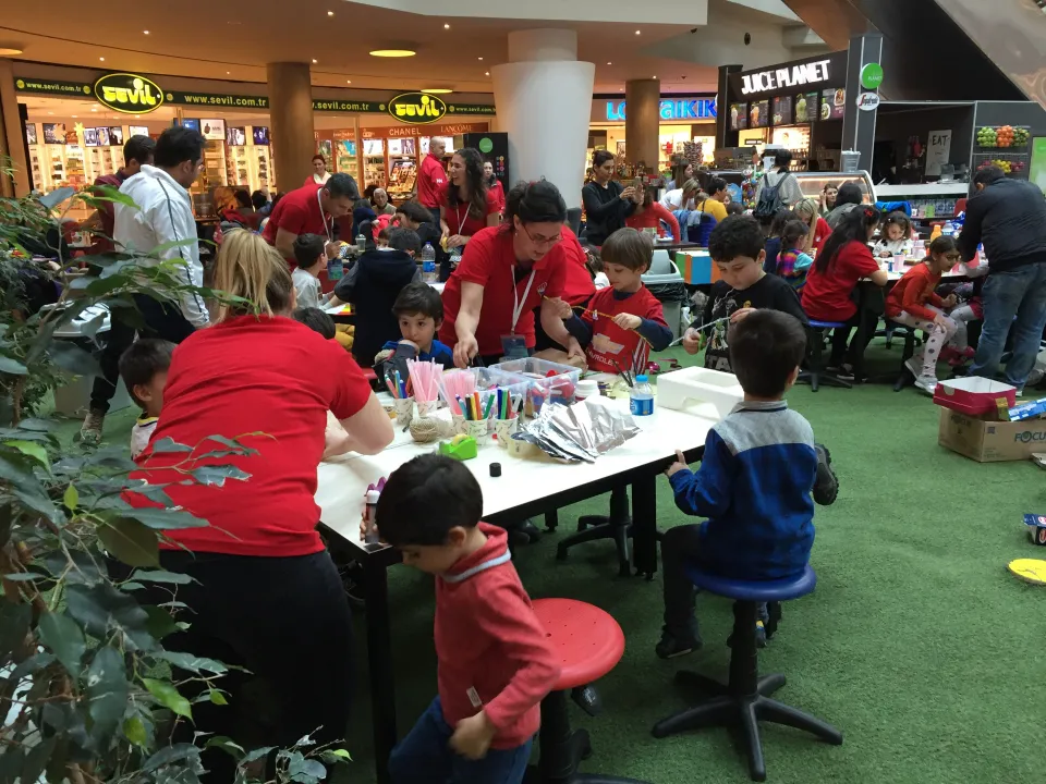 9 farklı geri dönüşüm projesinin gerçekleştirildiği atölyeye katılan yaklaşık 200 çocuk, doğal kaynakları tüketmeden değerlendirilebilen atıklarla kendilerine yeni eşyalar ve oyuncaklar tasarlayarak hem hayal güçlerini kullandılar hem de çevre bilincini öğrendi.