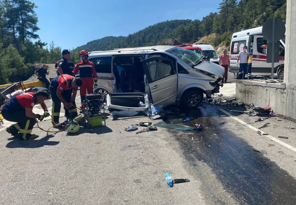 Çetin Gökçe'nin kullandığı plakası henüz öğrenilemeyen minibüs, Muğla-Denizli kara yolu Yörükoğlu mevkisinde beton bariyerlere çarptı.