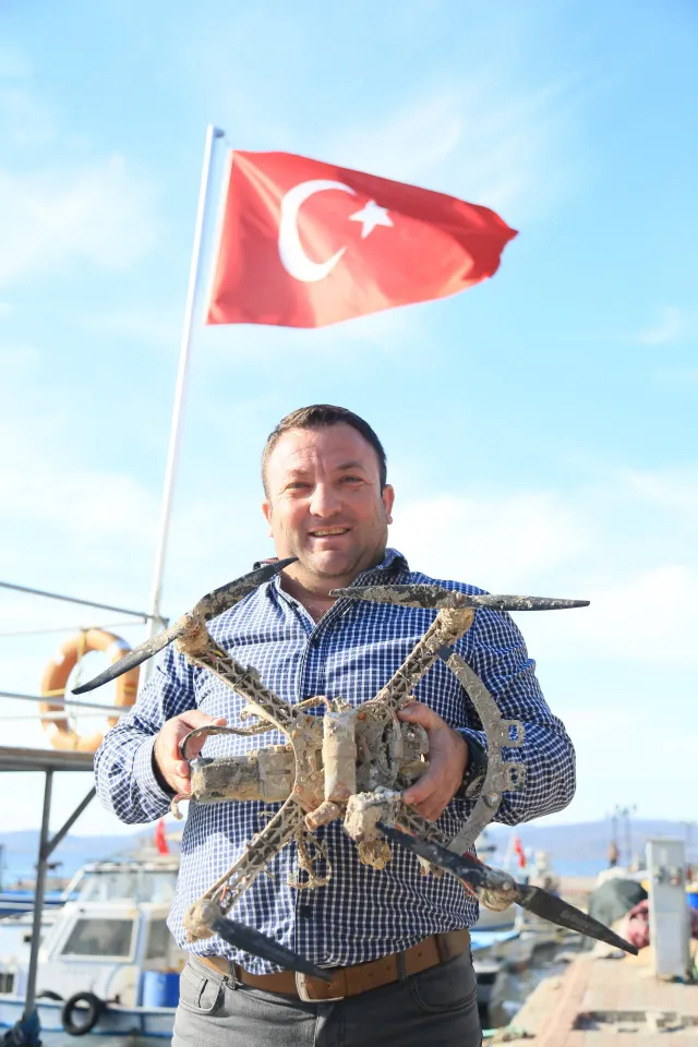 Milas’ın Güllük Körfezi’nde avlanan bir balıkçının ağına drone takıldı. Ağa takılan drone herkesi şaşkına çevirdi.