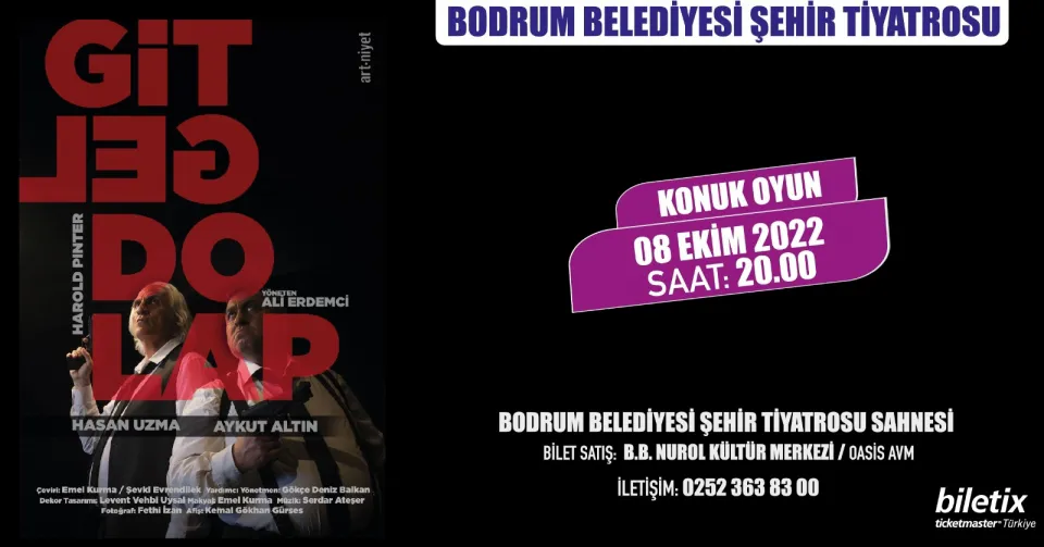 Bodrum Belediyesi Şehir Tiyatrosu Sahnesi’ne, 08 Ekim Cumartesi Akşamı Saat 20.00’de, “Art Niyet Tiyatro Topluluğu”nun “Gitgel Dolap” oyunu konuk oluyor. Biletler Nurol Kültür Merkezi Gişesive Biletix’ten temin edilebilir.
