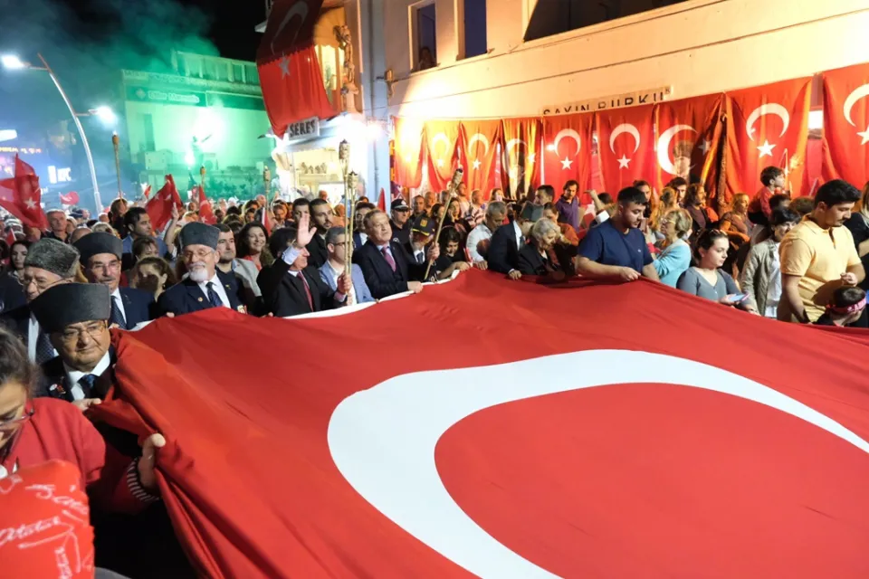 Meclis Üyesi Tamer Mandalinci, 7’den 77’ye elinde Atatürk ve Türk bayraklarıyla bayram coşkusunu Turgutreis Meydanı’na taşıyan vatandaşlara teşekkür ederek “Cumhuriyet paylaştıkça güzel, Atatürk’ün izinden gittikçe ilelebet yaşayacak Cumhuriyet.” dedi.