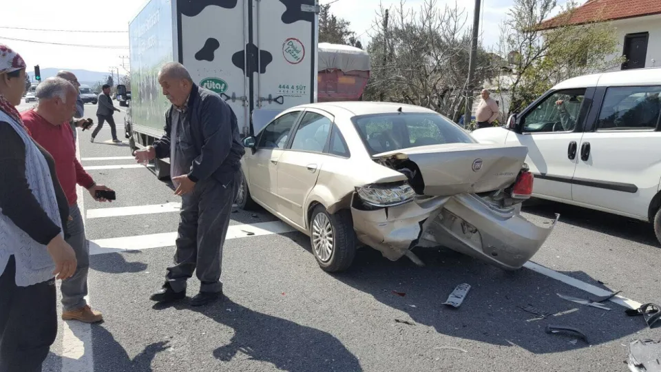 Milas-Bodrum karayolunda kırmızı ışıkta bekleyen araçlar birbirine girdi.