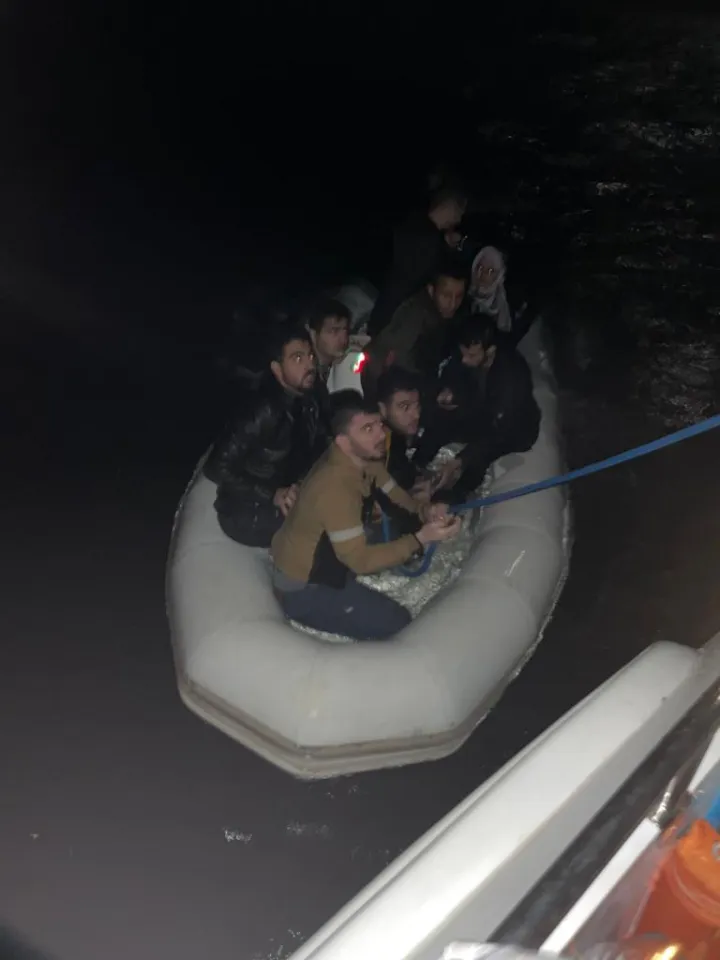 Bodrum ilçesinde, motor arızası yapıp sürüklenen lastik bottaki 9 düzensiz göçmen kurtarıldı.