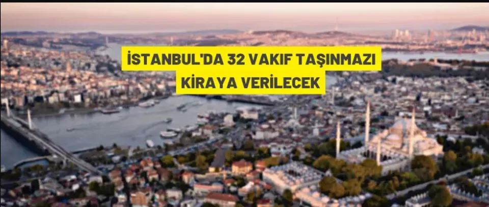 İstanbul'un Beyoğlu, Beşiktaş, Şişli, Fatih, Zeytinburnu, Bahçelievler, Bakırköy, Eyüpsultan ve Sultangazi ilçelerinde bulunan 32 Vakıf taşınmazı, ihalesinde oluşacak olan bedeller üzerinden 31.12.2023 tarihine kadar kiralanacak.