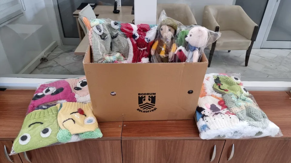 Bodrum Belediyesi, Lösemili Çocuklar Haftası dolayısıyla tedavisi devam eden çocuklar için el örgüsü şapkalar ve amigurumi bebekler hazırladı.