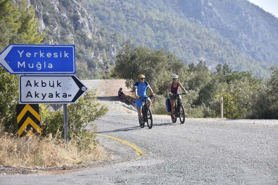 Farklı ülkelerde bisiklet turizmine yönelik hizmet veren acente yetkilileri, Muğla'da bisiklet turu ve mavi yolculuğun birleştiği alternatif rotaların tanıtıldığı tura katıldı.