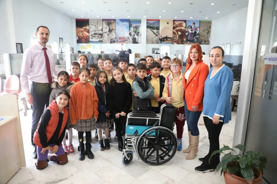 4. sınıf öğrencilerinin “Küçük Birikimler Büyük Mutluluklar Projesi” kapsamında kendi birikimleriyle satın aldıkları tekerlekli sandalye, Bodrum Belediyesi Kültür ve Sosyal İşler Müdürlüğü’ne teslim edildi.