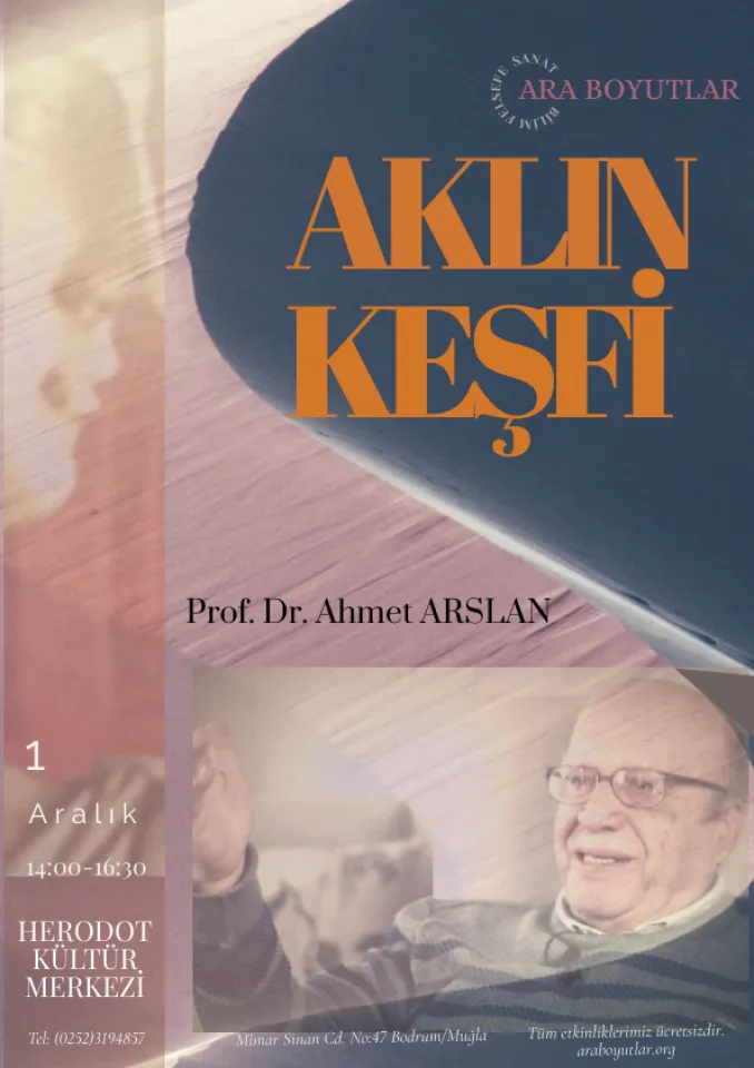 Felsefi olarak düşünmek ne anlama gelir? Aklı nasıl ve ne zaman konu edindik? Akıl ve inanç türleri nedir? Farklarını nasıl anlayacağız? Felsefe nerede çıktı? gibi soruları içeren ‘AKLIN KEŞFİ’ başlığı ile değerli felsefecimiz ‘Ahmet Arslan’ Bodrum’da…