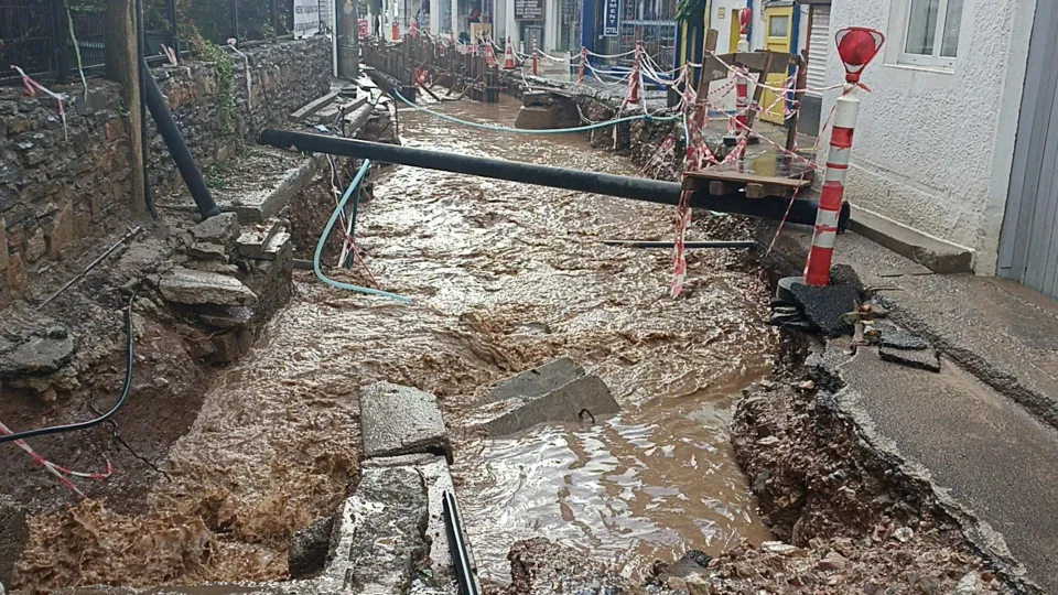 Bodrum Belediyesi ekipleri, temizlik çalışması yaparak suyun yollarda daha fazla birikmesini önlemeye çalıştı.