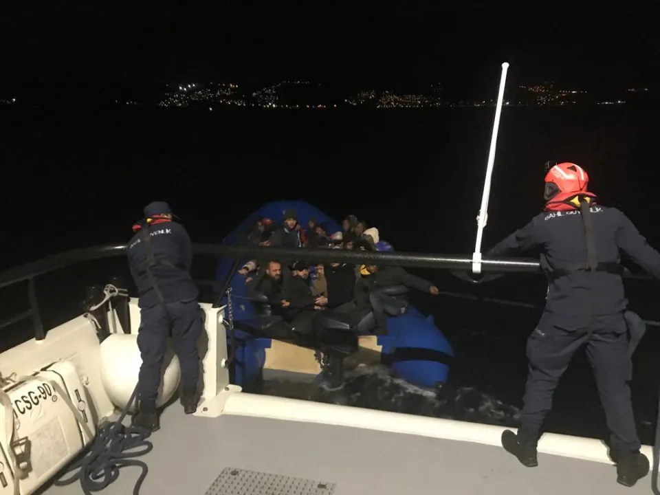 Ekiplerce durdurulan lastik bottaki 32 düzensiz göçmen bota alınarak karaya çıkarıldı.