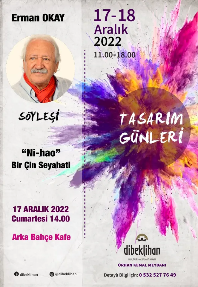 17 Aralık Cumartesi ve 18 Aralık Pazar günü 11:00 – 18:00 saatleri arasında Orhan Kemal Meydanı’nda gerçekleşecek olan etkinliğe farklı alanlardan tasarımcıların tasarım ürünleriyle bir çok katılımcı yer alacak. Tasarımcıların birbirinden özgün çalışmalarının sergileneceği ve satışa sunulacağı etkinlikte el emeğine verilen değer ön planda tutulurken ziyaretçilerinde keyifli günler geçirmesi hedefleniyor. İki gün sürecek olan etkinlikte; birbirinden güzel tasarımlarıyla seramik sanatçılarının yanı sıra 11 kişilik çini grubunun eserleri, mine işçiliği olan aksesuarlar, Anadolu kültürünü yansıtan ürünler, deri aksesuar, çanta ve takılar, el işçiliği kağıt rölyef eserler, su kabağından elişçiliği olan aydınlatmalar gibi bir tasarım ürün yer alacak. Muğlu Sıtkı Koçman Üniversitesi Bodrum Güzel Sanatlar Fakültesi Seramik Bölümü Öğrencileri’nin de yar alacağı tasarım günleri kapsamında 17 Aralık 2022 Cumartesi günü saat 14:00’da Arka Bahçe Kafe’de Sanatçı Erman Okay ile “Ni-hao” Söyleşisi ve peşi sıra Nil Yenigün Akbatur’la kemen dinletisi etkinlikleri de bulunuyor. 18 Aralık 2022 Pazar günü ise 14:00 ile 16:00 saatleri arasında yine Nil Yenigün Akbatur ile keman dinletisi devam edecek. Dibeklihan’da bulunan tasarım dükkanları, Dibek Bakkal, Etnografya Müzesi ve iki ayrı galeride bulunan Dibeklihan Koleksiyon Sergileri ile Arka Bahçe Kafe birimi kış aylarında da hizmet vermeye devam ediyor.