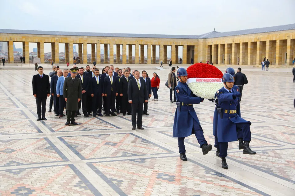Bodrum Fenerbahçeliler Derneği Başkanı Mert Sayın ve yönetim kurulu üyeleri ile dernek üyelerinin katıldığı ziyarette, Anıtkabir avlusundaki saygı duruşunun ardından Atatürk’ün mozolesine resmi tören ile çelenk bırakıldı.