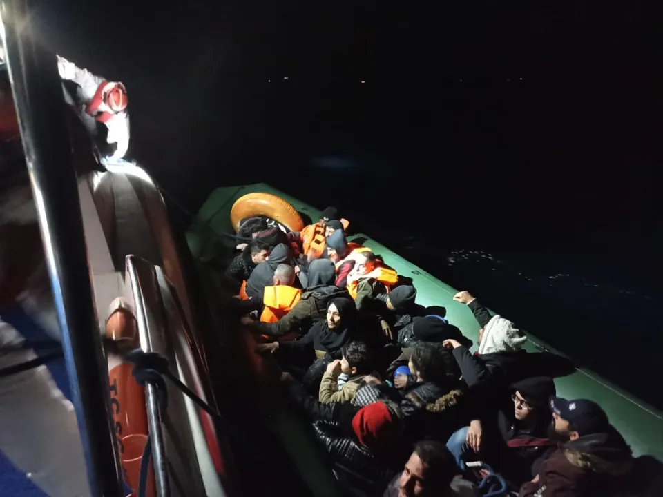 Ekipler, Yunanistan unsurlarınca Türk kara sularına itilen lastik bottaki 21 düzensiz göçmeni sahil güvenlik botuna alarak karaya çıkardı.