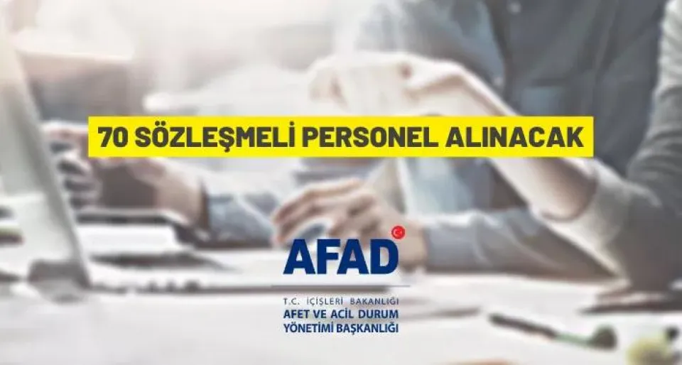 İçişleri Bakanlığı Afet ve Acil Durum Yönetimi Başkanlığı merkez teşkilatında çalıştırılmak üzere, 657 sayılı Devlet Memurları Kanunu ve Sözleşmeli Personel Çalıştırılmasına İlişkin Esaslar çerçevesinde 70 Sözleşmeli Personel alımı yapılacak.