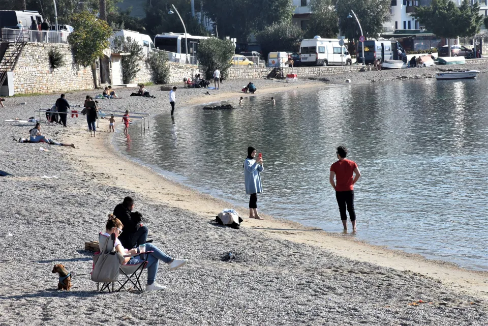 Bodrum'da da güneşli hava dolayısıyla sahillerde yoğunluk oluştu. Kumbahçe, Paşatarlası sahillerinde bazı turist ve vatandaşlar denize girip güneşlendi.