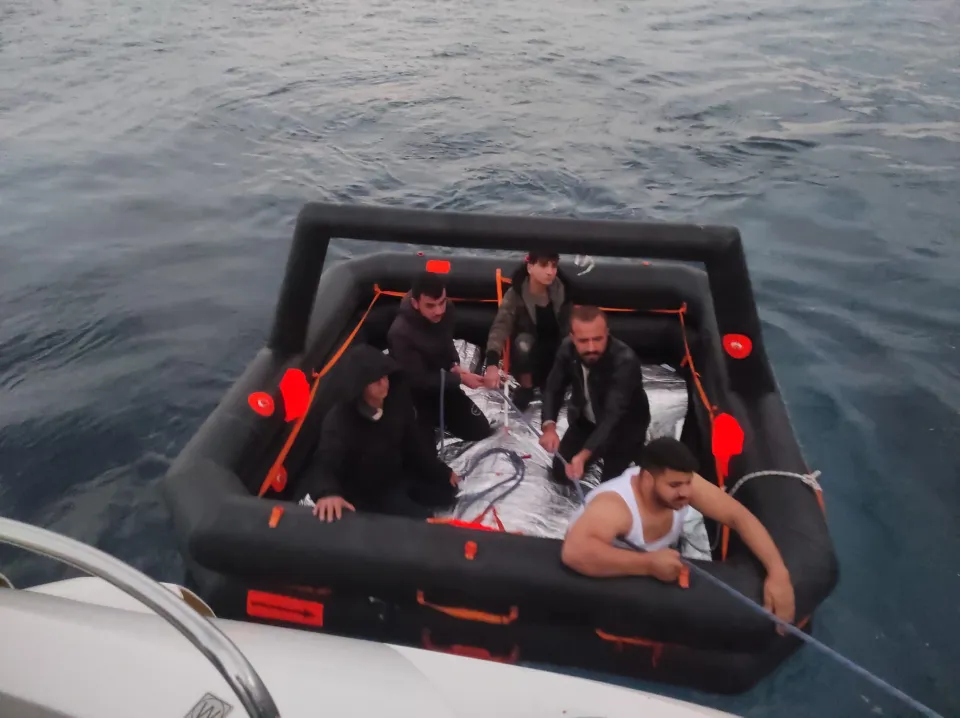 Ekipler Datça ilçesinde ise Yunanistan unsurlarınca Türk kara sularına itilen lastik botta bulunan 5 düzensiz göçmen kurtardı.