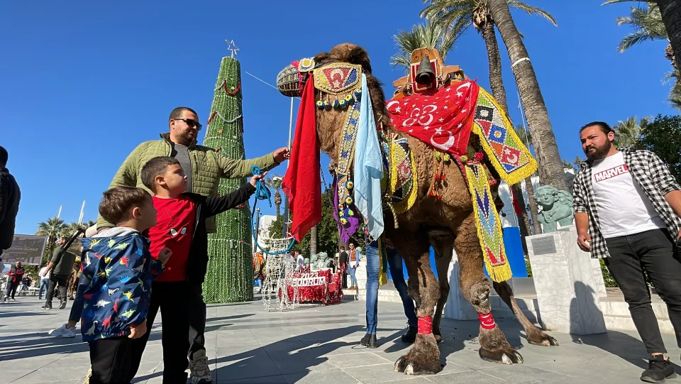 Develerin geçişi sırasında yerli ve yabancı turistler fotoğraf çekti, yürüyüşü izledi. Bir süre İskele Meydanı'nda kalan develer daha sonra marina çevresinde gezdirildi.