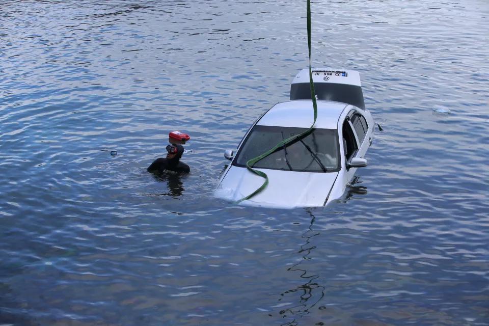 Kendi imkanlarıyla araçtan çıkan sürücü, otomobilin üzerine çıkarak yardım istedi. Çevredekilerin ihbarı ile kaza yerine 112 Acil Servis, jandarma ve Sahil Güvenlik ekipleri sevk edildi.
