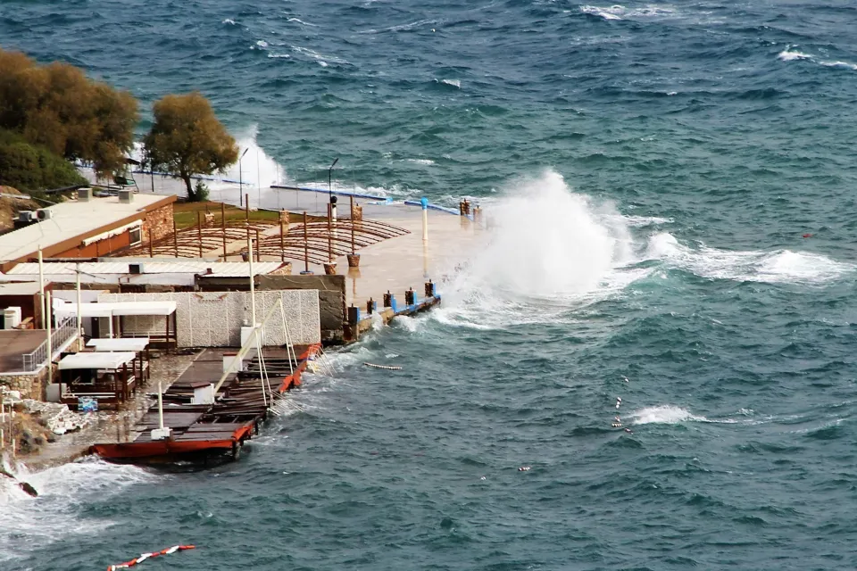 Sabah erken saatlerde başlayan şiddetli lodos sahil kenarlarında bulunan restoranları ve barları etkiledi. Saatteki hızının zaman zaman 80 kilometreye ulaştığı şiddetli fırtına nedeniyle birçok restoran, masa ve sandalyelerini içeriye almak zorunda kaldı. 2 haftadır sıcak havanın etkili olduğu Bodrum’da fırtınayla birlikte hayat durma noktasına geldi. Kumbahçe, Gümbet, Bitez, Ortakent ve birçok sahil kenarında dalgaların boyu metrelerce yükseldi. Bazı tekneler batma tehlikesi geçirdi. Bodrum-Kos feribot seferleri ve uçak seferleri ise iptal edildi. Belediye, yaptığı anonsla vatandaşlara uyarılarda bulundu. Fırtınanın etkisinin gece geç saatlere kadar süreceği öğrenildi.