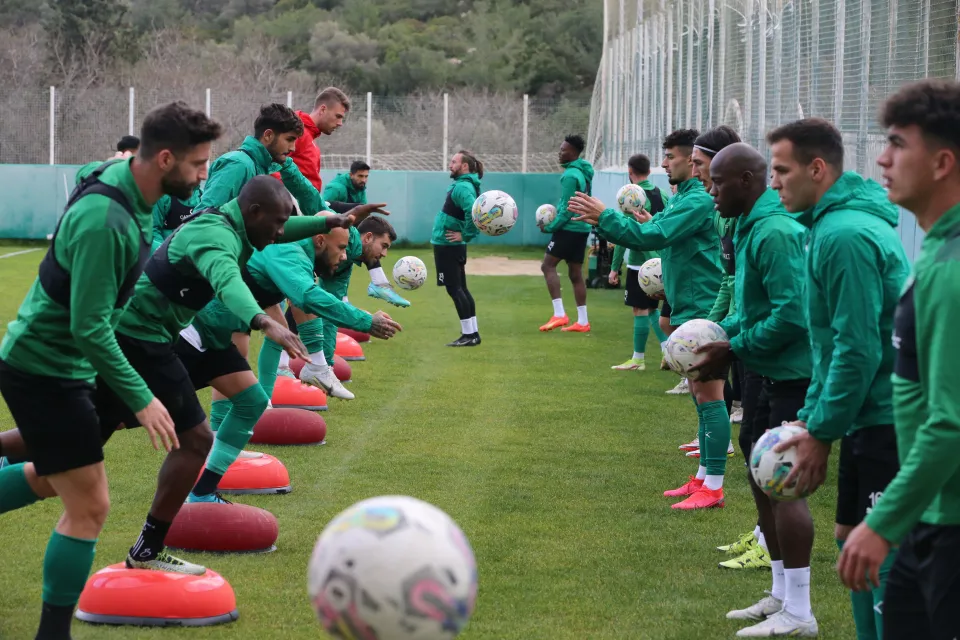 Yeşil-beyazlı oyuncular, Yalıçiftlik Tesisleri'nde teknik direktör İsmet Taşdemir yönetimindeki idmanda koşunun ardından top kapma çalışması yaptı. Yeni transfer stoper Eren Albayrak, takımdan ayrı bireysel çalıştı.