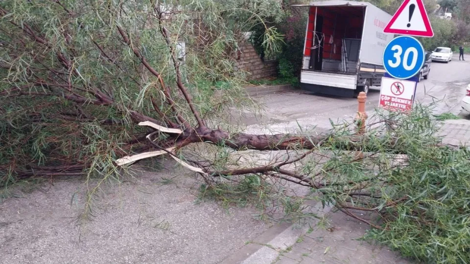 Bodrum ilçesi genelinde gece saatlerinde etkili olan fırtına nedeniyle şehrin bazı bölgelerinde ağaçlar devrildi.
