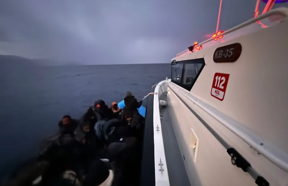 Datça ilçesinde de Yunanistan unsurlarınca Türk kara sularına itilen lastik botta bulunan 35 düzensiz göçmen kurtarıldı.