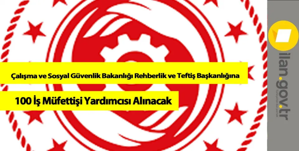Çalışma ve Sosyal Güvenlik Bakanlığı Rehberlik ve Teftiş Başkanlığı’nda Genel İdare Hizmetleri Sınıfında 7., 8. ve 9’uncu derecede açık bulunan İş Müfettişi Yardımcısı kadrolarına, Ankara’da yapılacak sınavla İşin Yürütümü yönünden görev yapmak üzere 70, İş Sağlığı ve Güvenliği yönünden görev yapmak üzere 30 olmak üzere toplam 100 adet İş Müfettişi Yardımcısı alınacak.