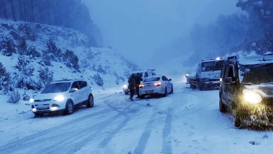 AFAD ekipleri yolda kalan sürücülerin zincir takmasına yardım etti. Karayolları ekipleri kara yolunda kar küreme ve tuzlama çalışması gerçekleştiriyor.