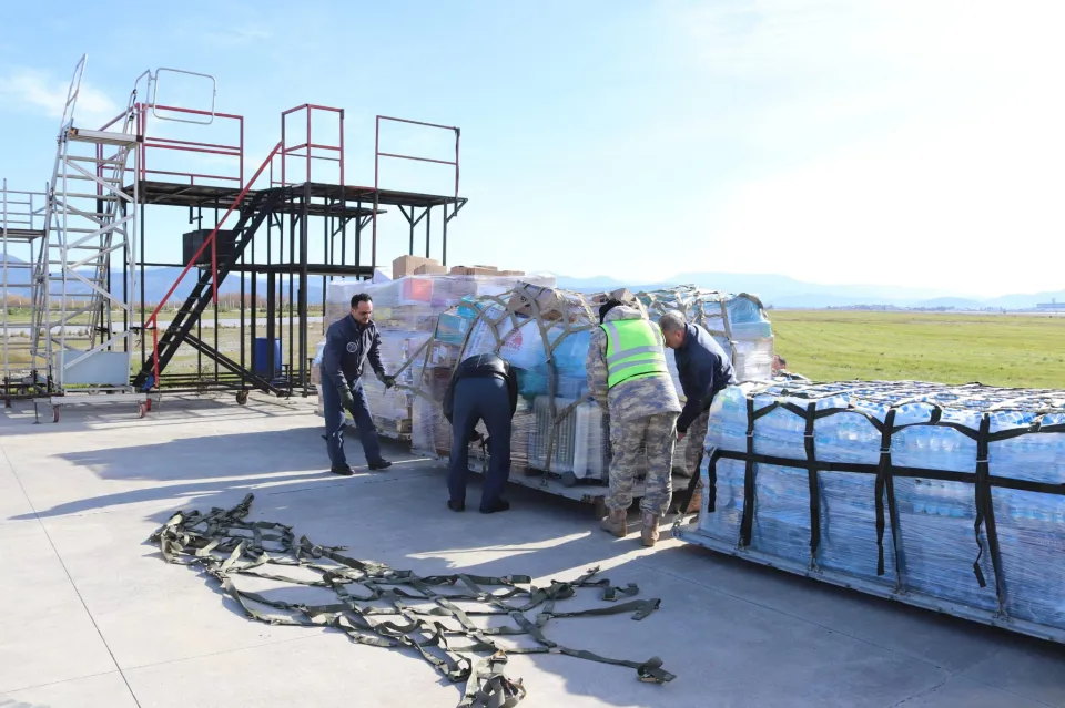Muğla Valiliği koordinesinde toplanan tıbbi malzeme, gıda, battaniye, su, hijyen malzemesi, ısıtıcı ve kışlık kıyafet gibi 15.265 kg yardım malzemesi Milas - Bodrum Havalimanından askeri kargo uçağına yüklenerek Kahramanmaraş’a gönderildi.