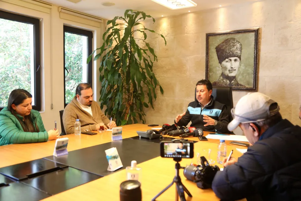 Bodrum Belediyesi toplantı salonunda, yerel ve ulusal basın temsilcilerinin katılımıyla gerçekleşen bilgilendirme toplantısında konuşan Başkan Aras, bölgede Bodrum’dan gönüllülerin ve belediye ekiplerinin çalışmalarına devam ettiğini ifade etti.