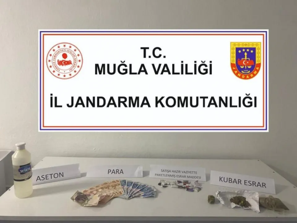 Operasyonda yapılan aramada; çok miktarda kubar esrar, 1 adet uyuşturucu madde kullanma aparatı, 455 ml saf aseton ve suçtan elde edildiği değerlendirilen 1015 TL nakit para ele geçirildi.