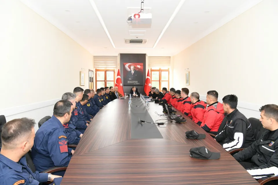 Muğla Valisi Orhan Tavlı, Kahramanmaraş merkezli 6 Şubat'taki depremlerin ilk gününden itibaren arama kurtarma çalışmalarına katılan Jandarma Arama Kurtarma (JAK) ve Sahil Güvenlik Güney Ege Grup Komutanlığı timleriyle görüştü.