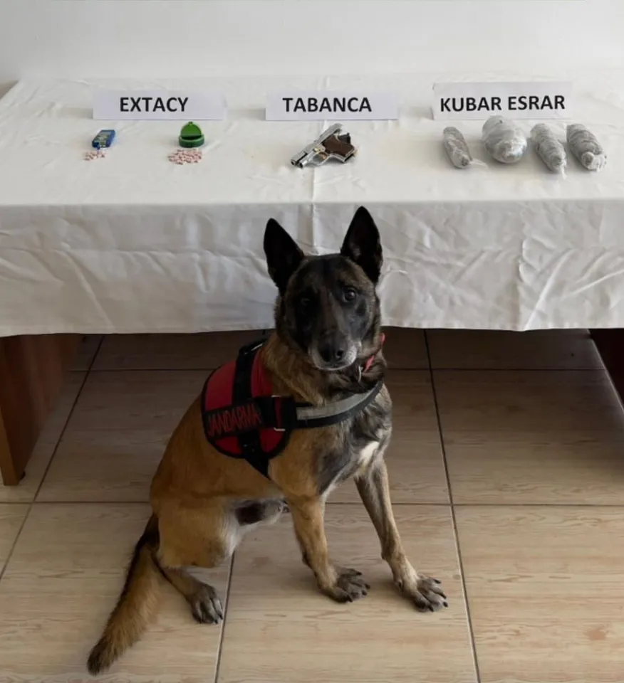 İl Jandarma Komutanlığınca yapılan istihbari çalışmalar sonucu, Güvercinlik Mahallesi'nde yapılan kontrollerde, Y.S, C.C. ve M.K'nin üzerinde, uyuşturucu madde arama köpeği "Efor" ile yapılan aramada, esrar, uyuşturucu hap ve ruhsatsız tabanca ele geçirildi.