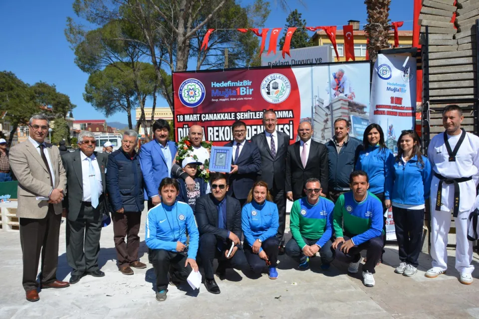 Muğla Büyükşehir Belediyesi ve Milas Belediyesi iş birliğiyle düzenlenen 18 Mart Çanakkale Şehitlerini Anma etkinlikleri çerçevesinde, Dünya Kırış Rekoru Denemesinde Ali Bahçetepe Göğüs Üstünde 16 Beton Bloğu 4.75 saniyede kırarak yeni rekorun sahibi oldu.