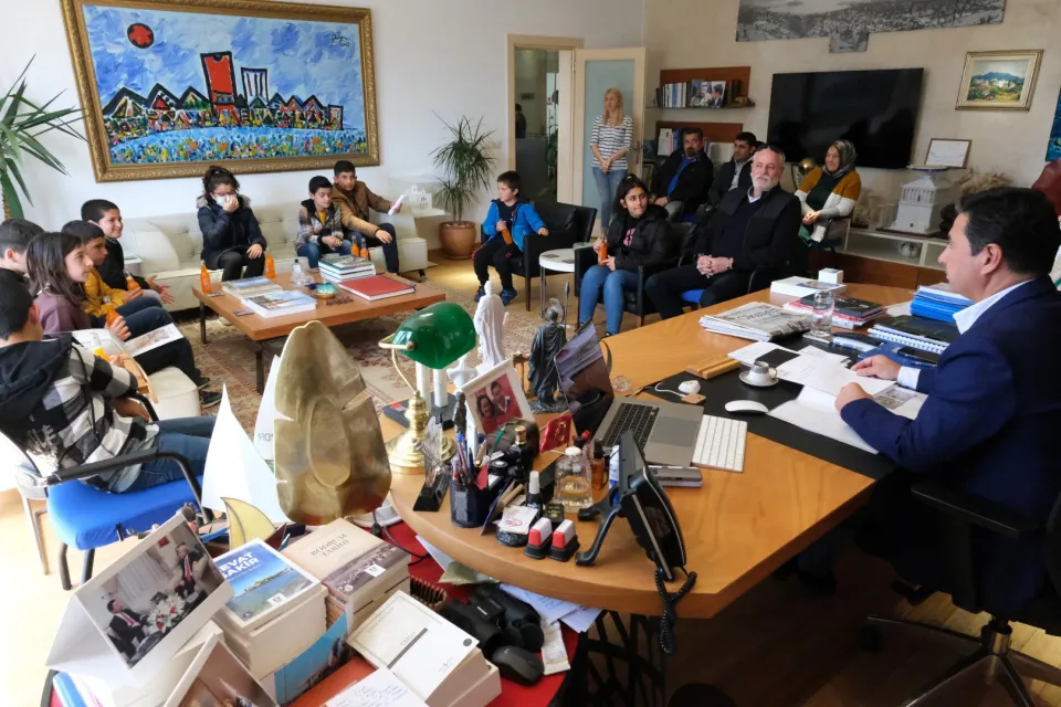 Kent Konseyi Çocuk Meclisi üyesi Bodrumlu çocuklar, Bodrum Belediye Başkanı Ahmet Aras’ı makamında ziyaret ederek çalışmaları hakkında bilgiler verdi.