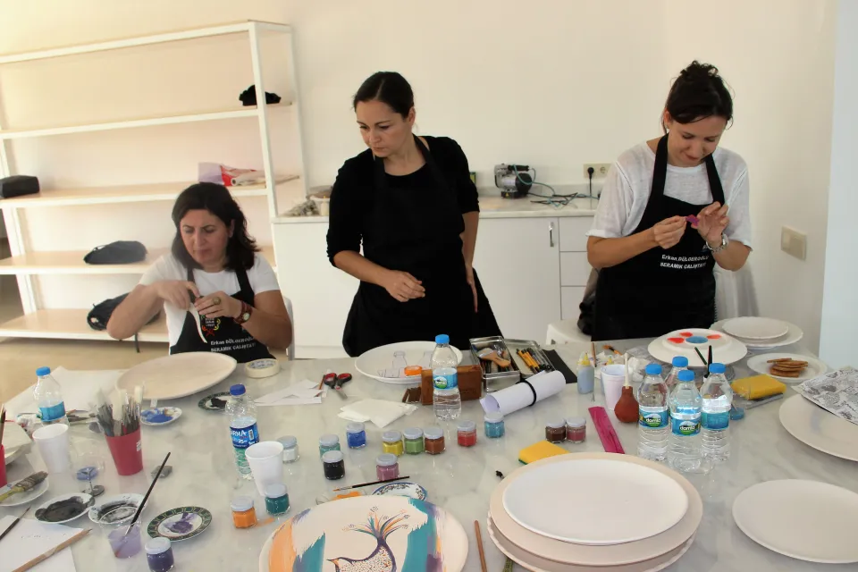 Bu yıl 4’üncüsü düzenlenen Seramik Çalıştayı için farklı üniversitelerden 70 akademisyen Bodrum’a gelerek engelli öğrencilere seramik dersleri verdi. El emeği göz nuru seramik çalışmalarına başlayan eğitimciler, yaptıkları eserleri sergide satarak gelirini Bodrum Sağlık Vakfına bağışlayacak. Birbirinden güzel eserleri seramiklerin üzerine nakış gibi işleyen akademisyenler, öğrencilere seramik çalışmalarını da anlattı. Engelli öğrencilerle beraber seramik yapan öğretim görevlileri, böyle bir çalışmaya katkıda bulunmaktan dolayı memnuniyetlerini dile getirdi.
