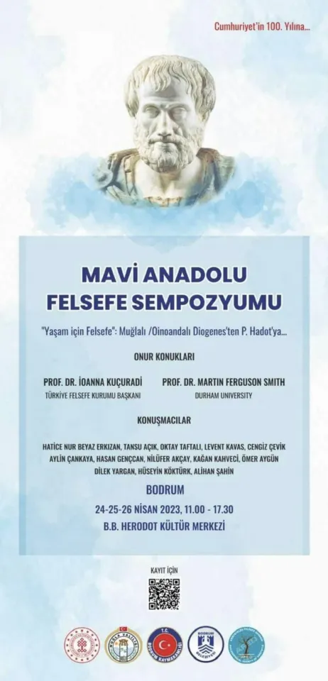 Aristoteles Felsefe Derneği olarak ‘’Yaşam İçin Felsefe” başlığı altında ulusal ve uluslararası ölçekte 24-25-26 Nisan 2023 tarihlerinde Bodrum Belediyesi Herodot Kültür merkezinde tarihine ışık tutan felsefeleri ve felsefecileri ele alacağımız Mavi Anadolu Felsefe sempozyumları ilkini Bodrum’da yapılacak.