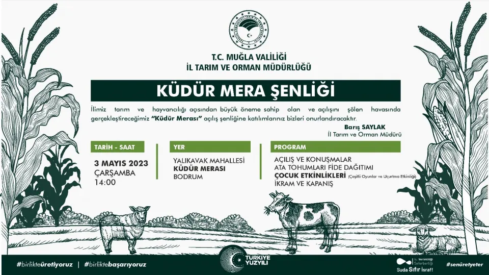 İl Tarım ve Orman Müdürlüğünden yapılan açıklamaya göre, 2021'de Cumhurbaşkanlığı tarafından "Kesin Korunacak Hassas Alan" ilan edilen ve 2022'de Tarım ve Orman Bakanlığı tarafından "Mera Islah ve Amenajman Projesi" başlatılan Bodrum Yalıkavak Mahallesi Küdür Yarımadası'nda "Mera Şenliği" düzenlenecek.