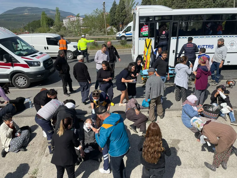 Muğla'da midibüsün kamyona çarpması sonucu 4'ü ağır 34 kişi yaralandı.