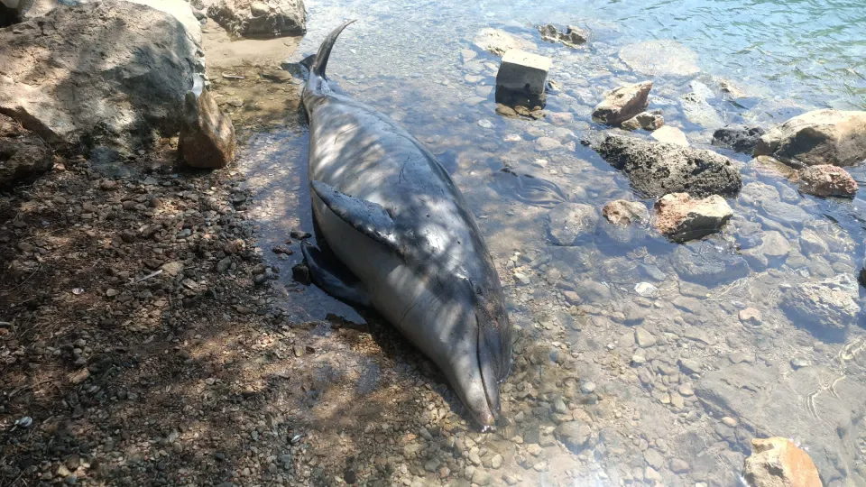 Bodrum ilçesinde sahile vurmuş ölü yunus bulundu.