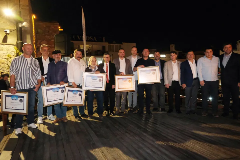 Bodrum’un yükselişindeki en önemli kaynak olan deniz turizminin gelişiminde büyük rol sahibi kayık ustalarını bir araya getirmek ve ebediyete intikal eden ustaları anmak üzere önceki akşam Trafo Kafe’de düzenlenen saygı gecesinde, deniz emekçileri ve gıyabında ailelerine plaket verildi. Geceye yoğun bir katılım gerçekleşirken Bodrum’un yerel sanatçılarından Neco ve Tenekeci Mehmet’in seslendirdiği Bodrum türküleri de geceye renk kattı.