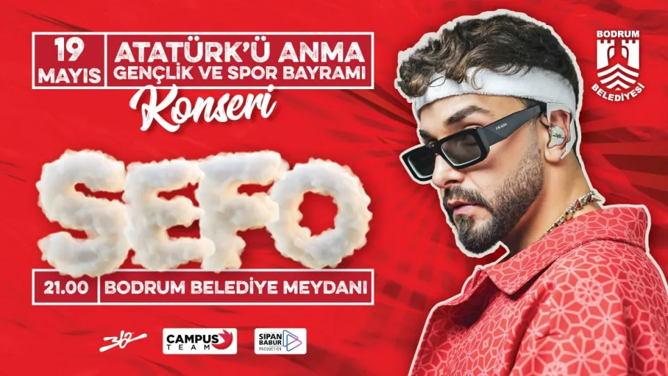Bodrum Belediyesi Kültür ve Sosyal İşler Müdürlüğü organizasyonuyla 19 Mayıs Cuma saat 20.00’de Milta Bodrum Marina’dan kortej yürüyüşü, Bodrum Belediye Meydanı’na kadar devam ederken konser öncesi çeşitli başarılar elde eden sporcular, sahneye davet edilecek. Saat 21.00’de ise “Bilmem mi” isimli şarkısıyla geniş kitlelerce tanınan Türk rap müziği sanatçısı Sefo, hayranlarıyla buluşacak.