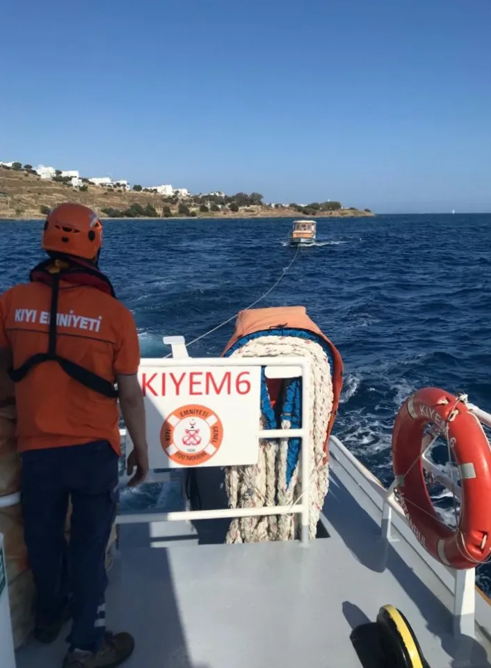 Bodrum ilçesinde denizde sürüklenen tekne, Kıyı Emniyeti Genel Müdürlüğü (KEGM) ekiplerince kıyıya getirildi.