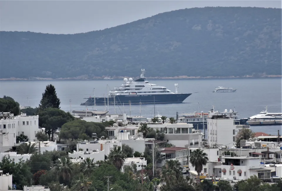 Dünyan sıralamasındaki büyük motor yatlar arasında yer alan "Octopus", Muğla'nın Bodrum ilçesine demir attı.